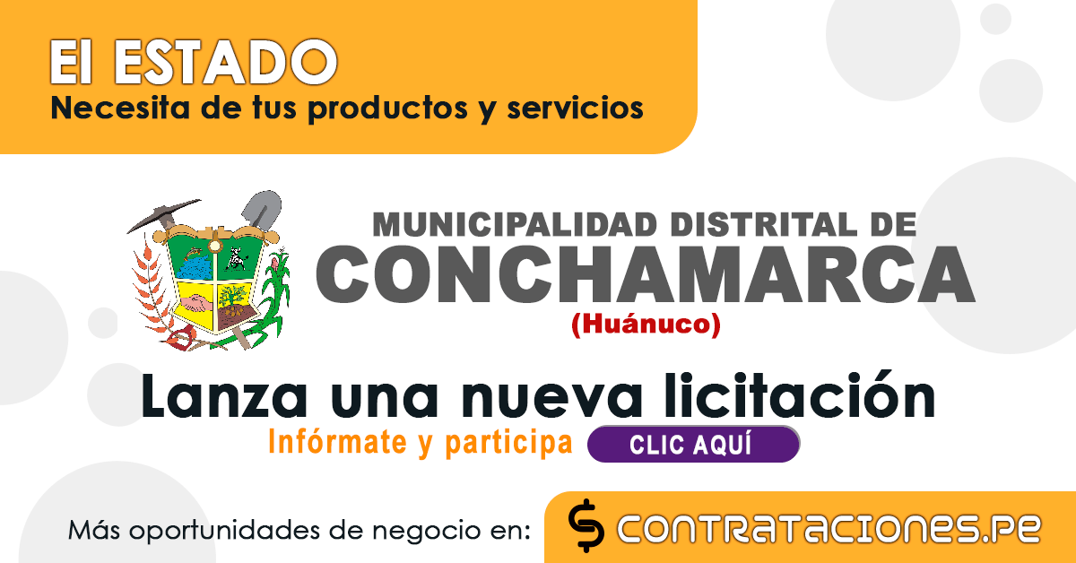 Ingresa a cada convocatoria, descarga las bases, informate y presentar tu propuesta para contratar con esta importante entidad del sector público: MUNICIPALIDAD DE CONCHAMARCA