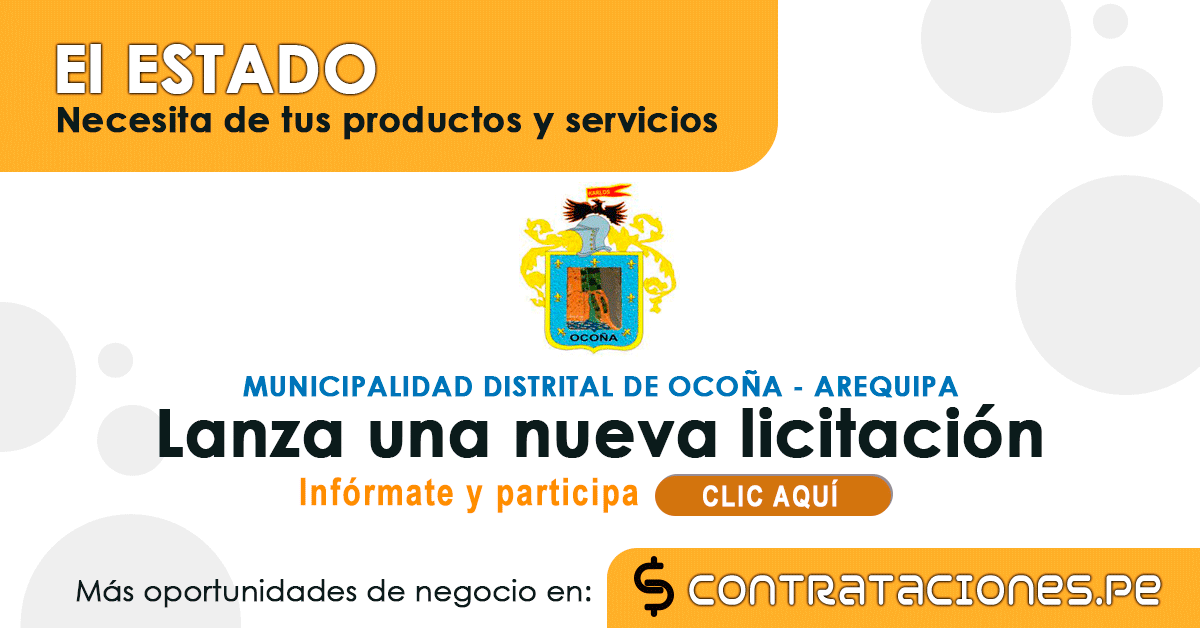 A través de esta página web te informaremos sobre las oportunidades para contratar con: MUNICIPALIDAD DISTRITAL DE OCOÑA.